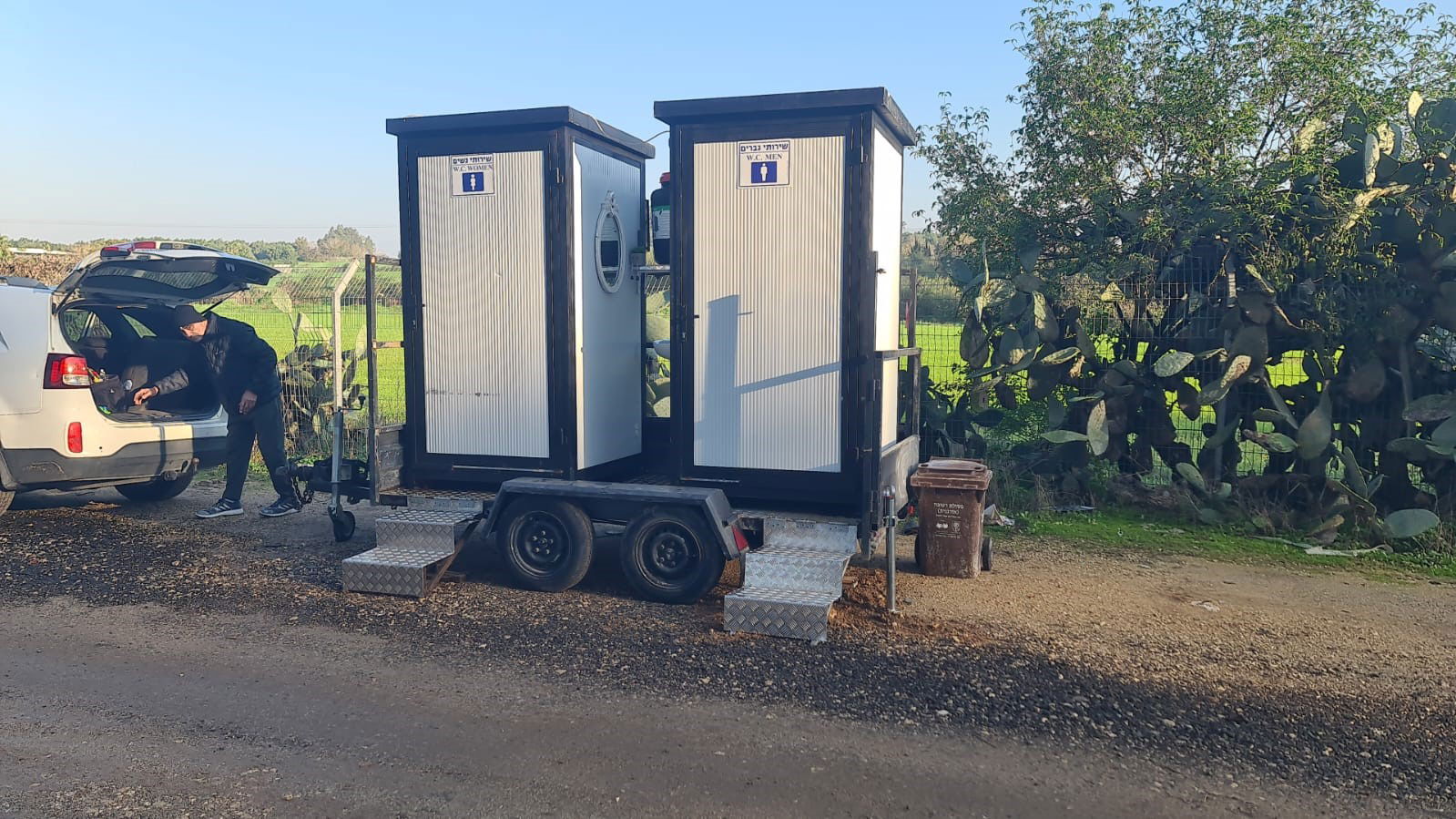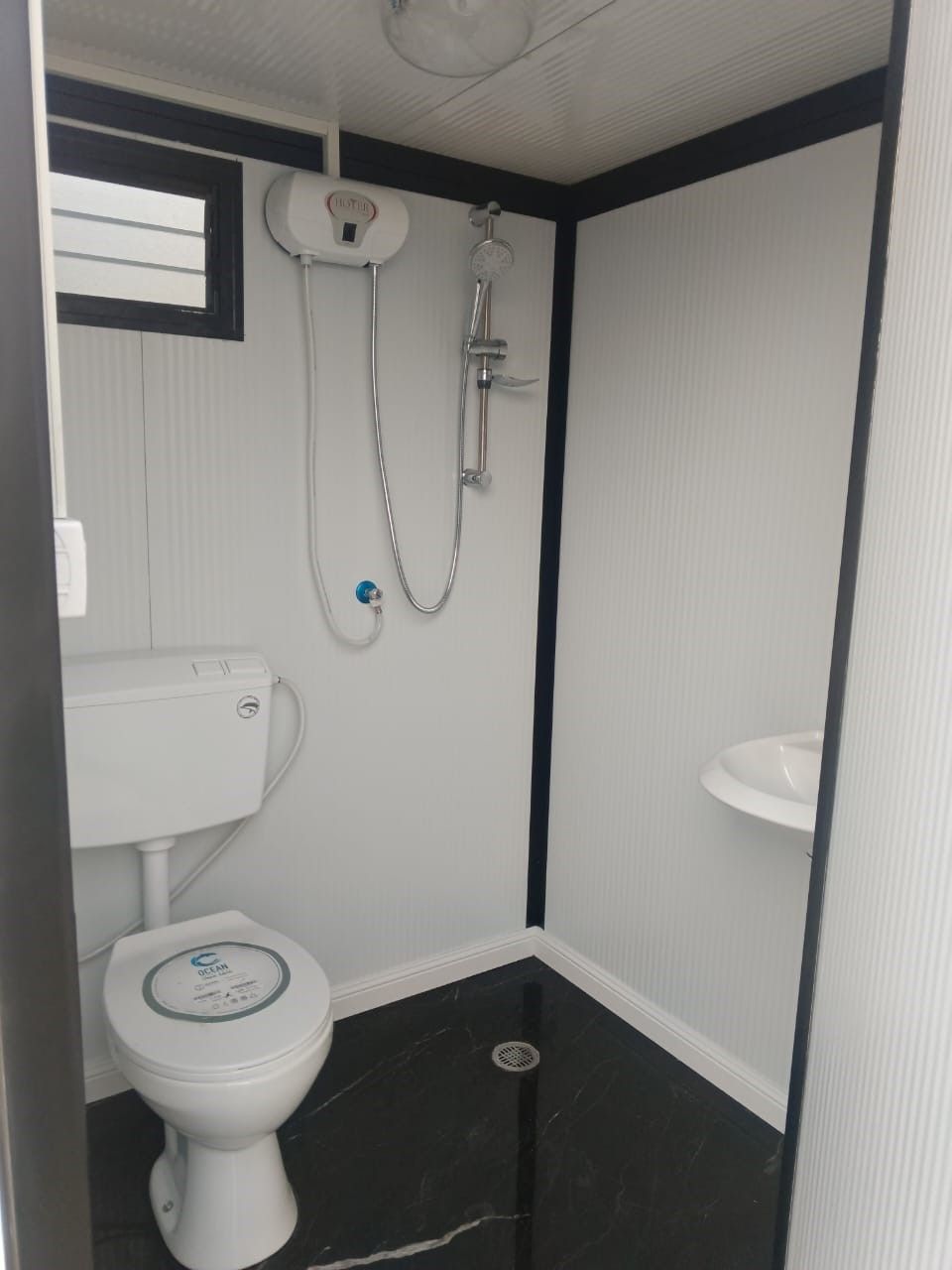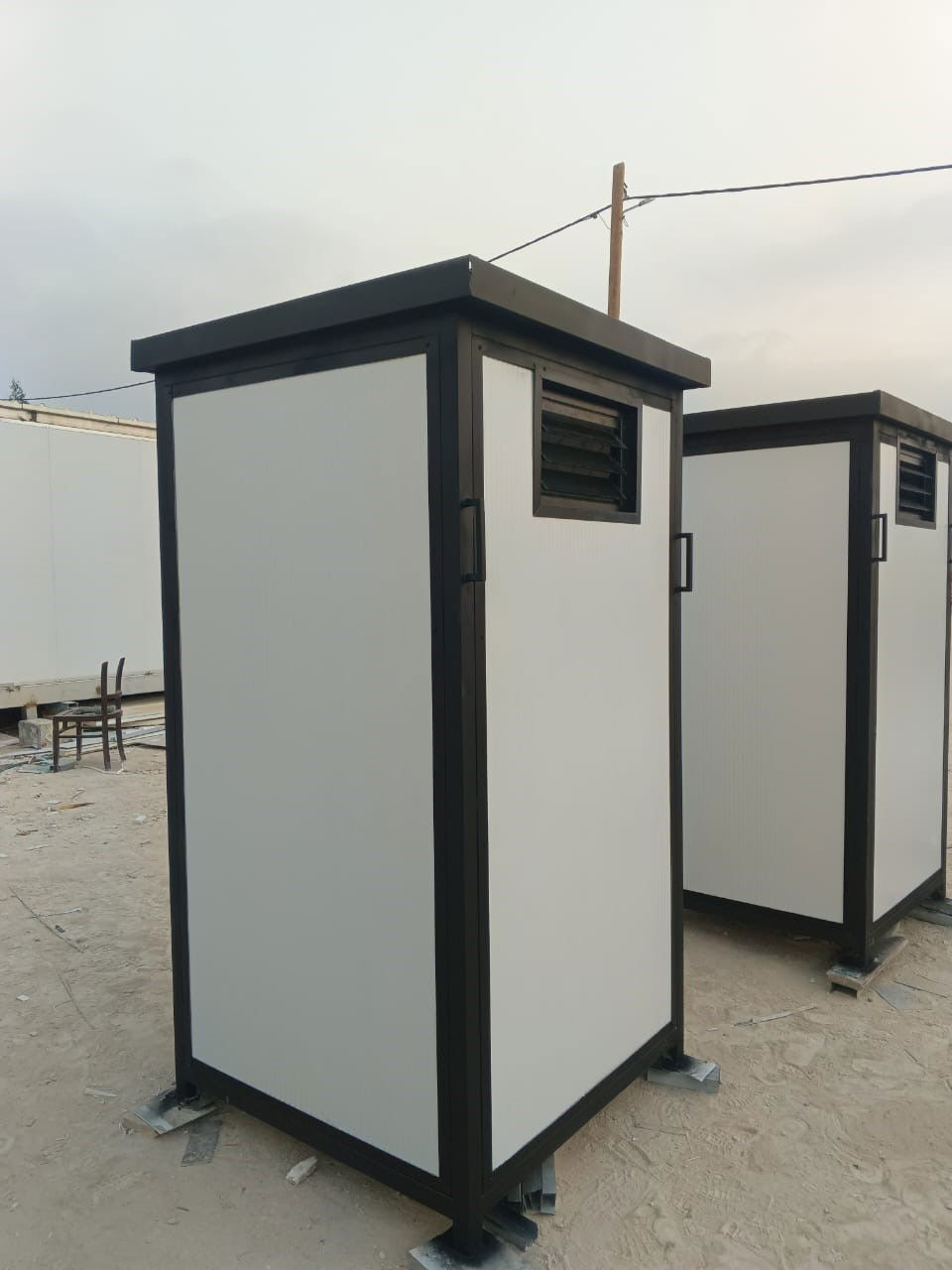 שירותים ניידים עם מקלחות – מבנה נייד מבניה קלה, מוכן לשימוש מיידי. היחידה כוללת תא שירותים ותא מקלחת נפרדים, חיבור למים חמים וקרים, ניקוז וחשמל. מתאים לאתרי עבודה, שטח פתוח, חקלאות ומתחמים זמניים – עם אפשרות התאמה לפי דרישה.