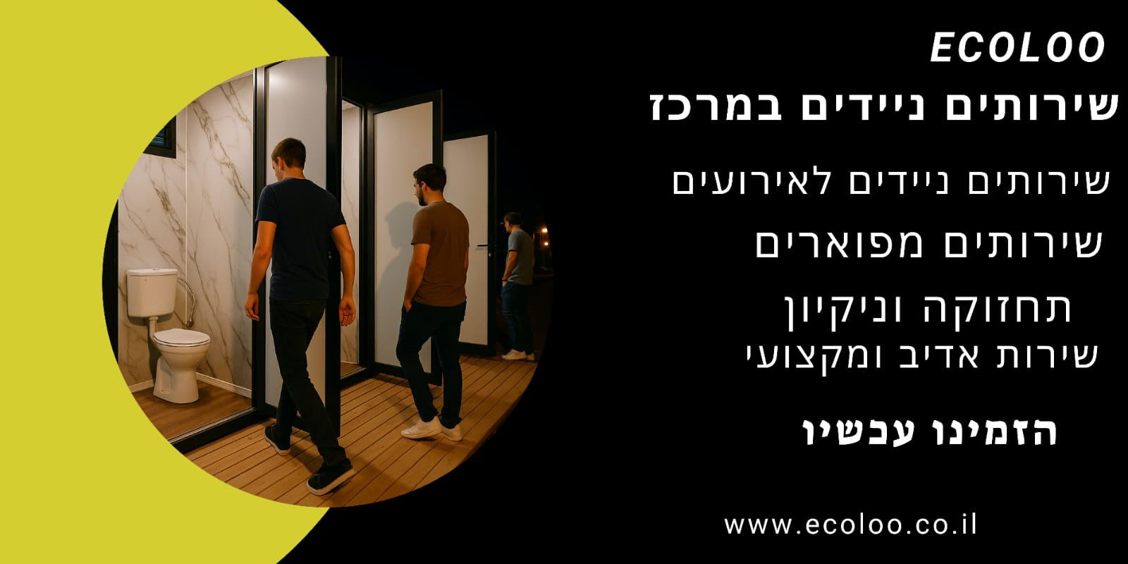 EcoLoo כאן כדי לספק שירותים ניידים במרכז הארץ – בצורה מקצועית, מסודרת וללא פשרות.